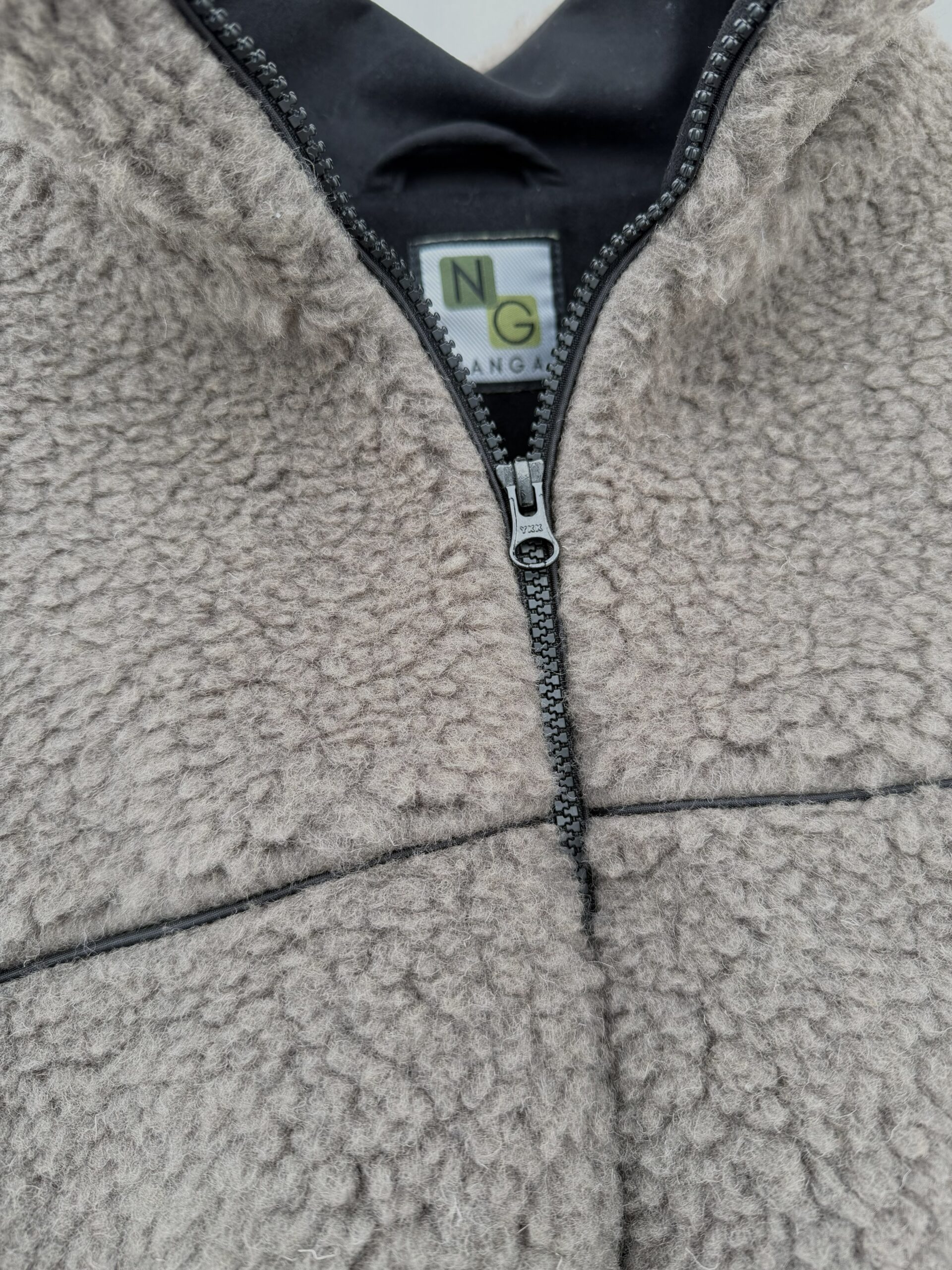 Logan to zimowa forma w najczystszej postaci. Prosta linia, gruba 400-gramowa wełna merino i konstrukcja, która nie potrzebuje zbędnych warstw. Kurtka nie posiada podszewki — świadomie. Wnętrze jest starannie wykończone, a naturalna struktura materiału pozostaje otwarta, dzięki czemu wełna zachowuje swoje właściwości termiczne i oddychające.