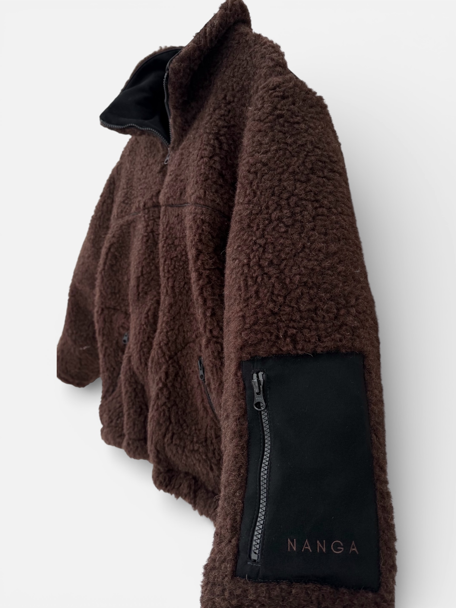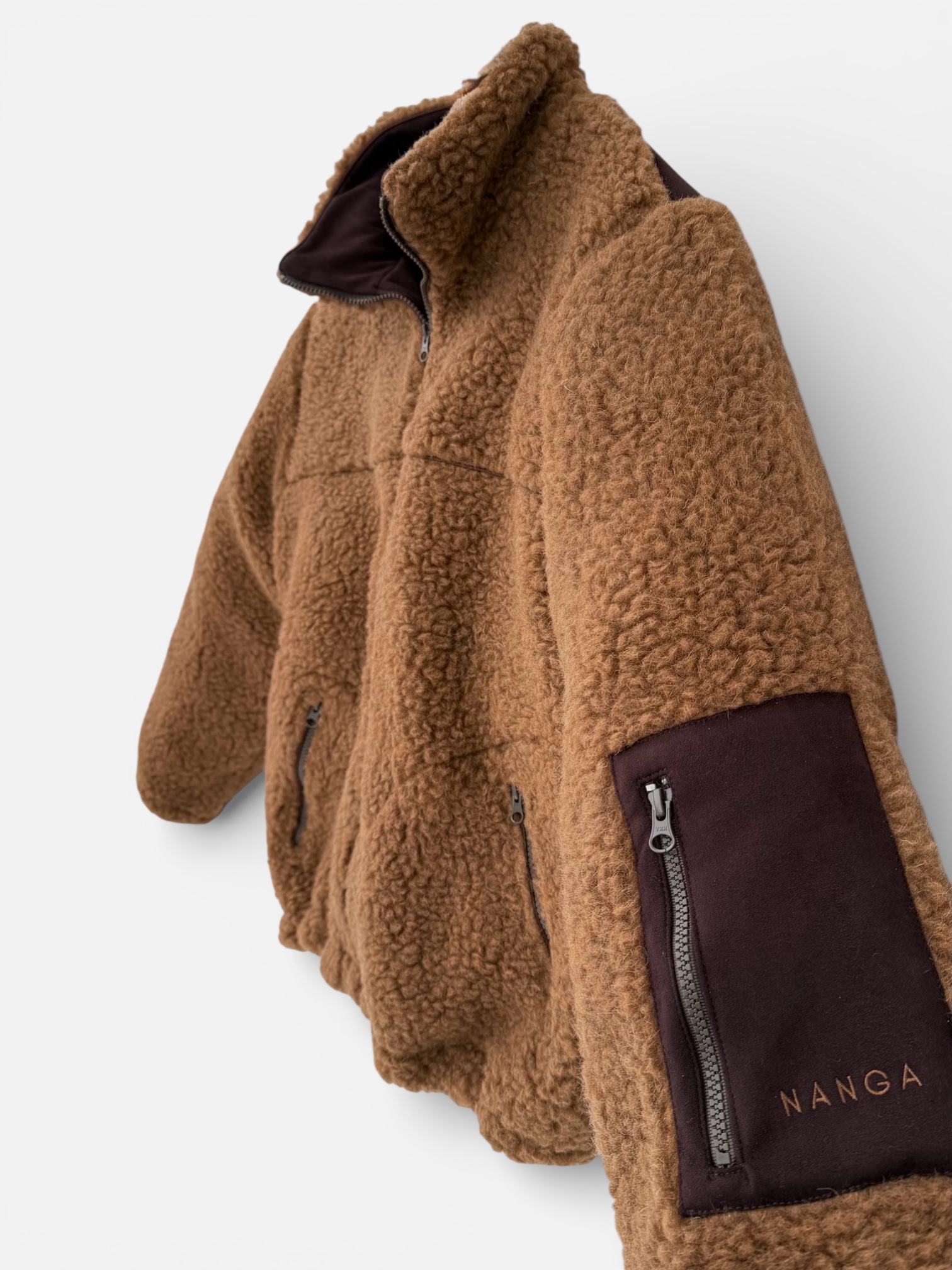 Dodatkowa kieszeń na lewym rękawie — również zapinana na zamek — została wykonana z elastycznego materiału, który współpracuje z ruchem ramienia. Tył kurtki wzmocniony jest doszytym panelem z tego samego materiału, na którym znajduje się haftowane logo Nanga.