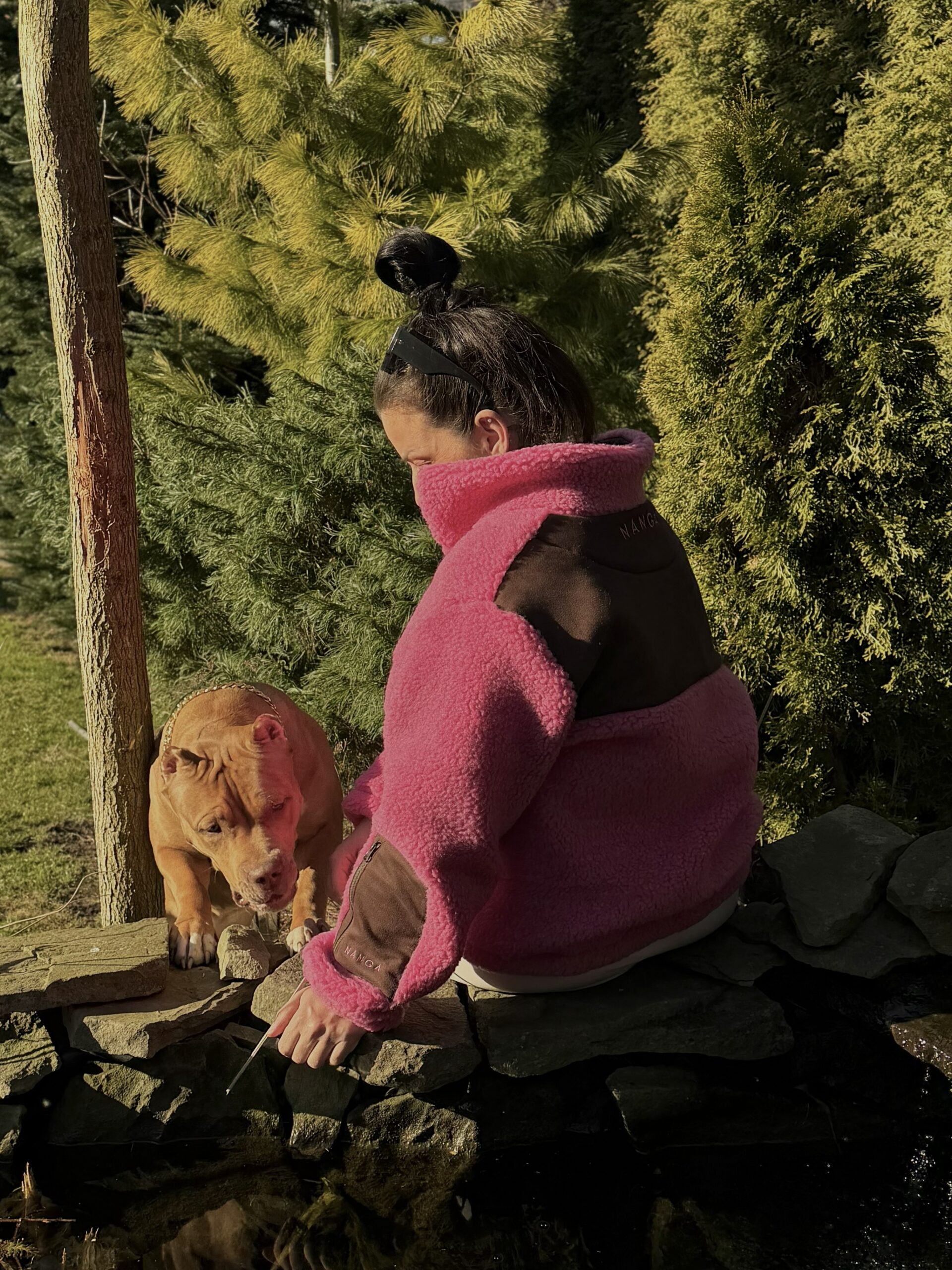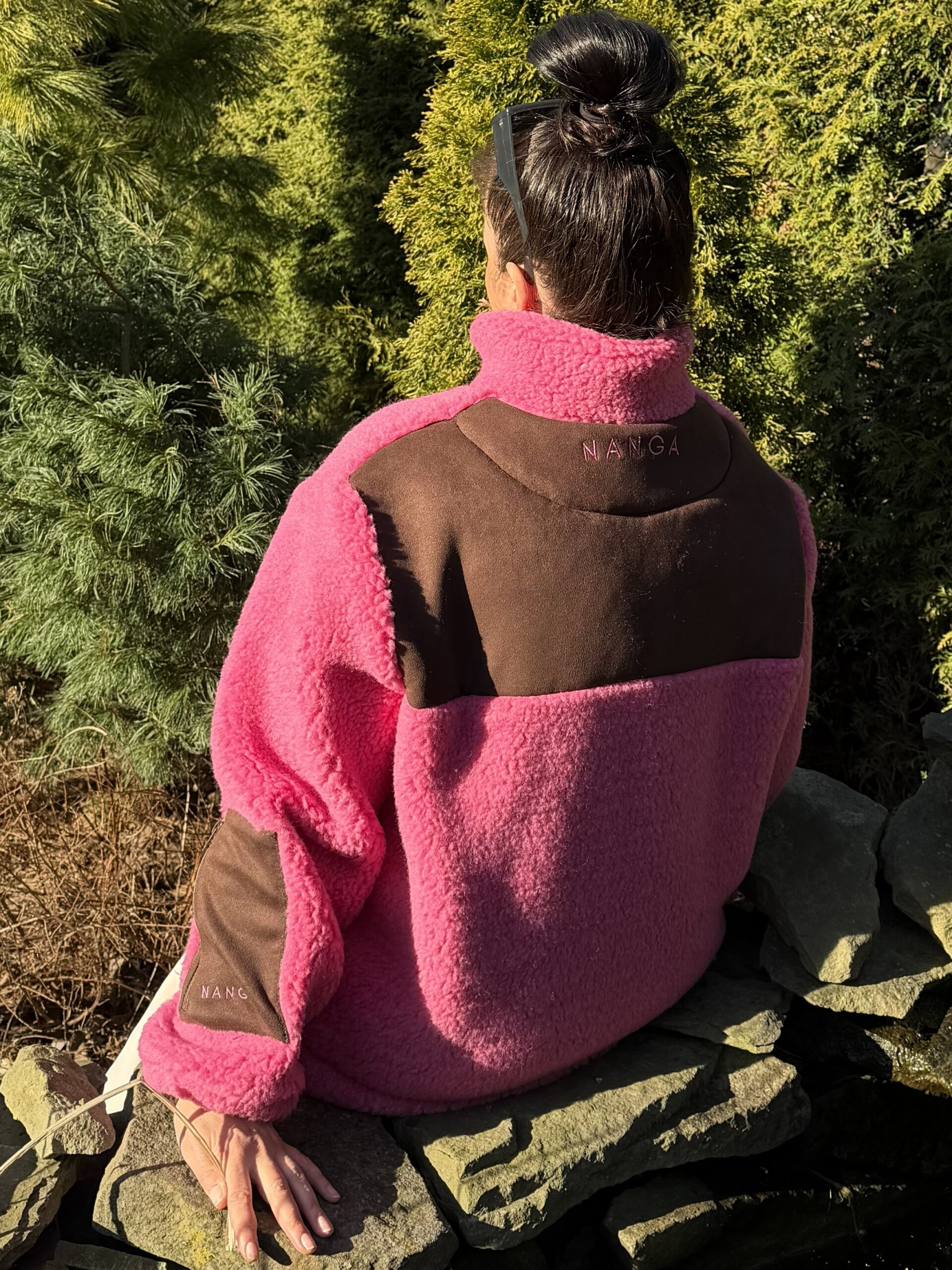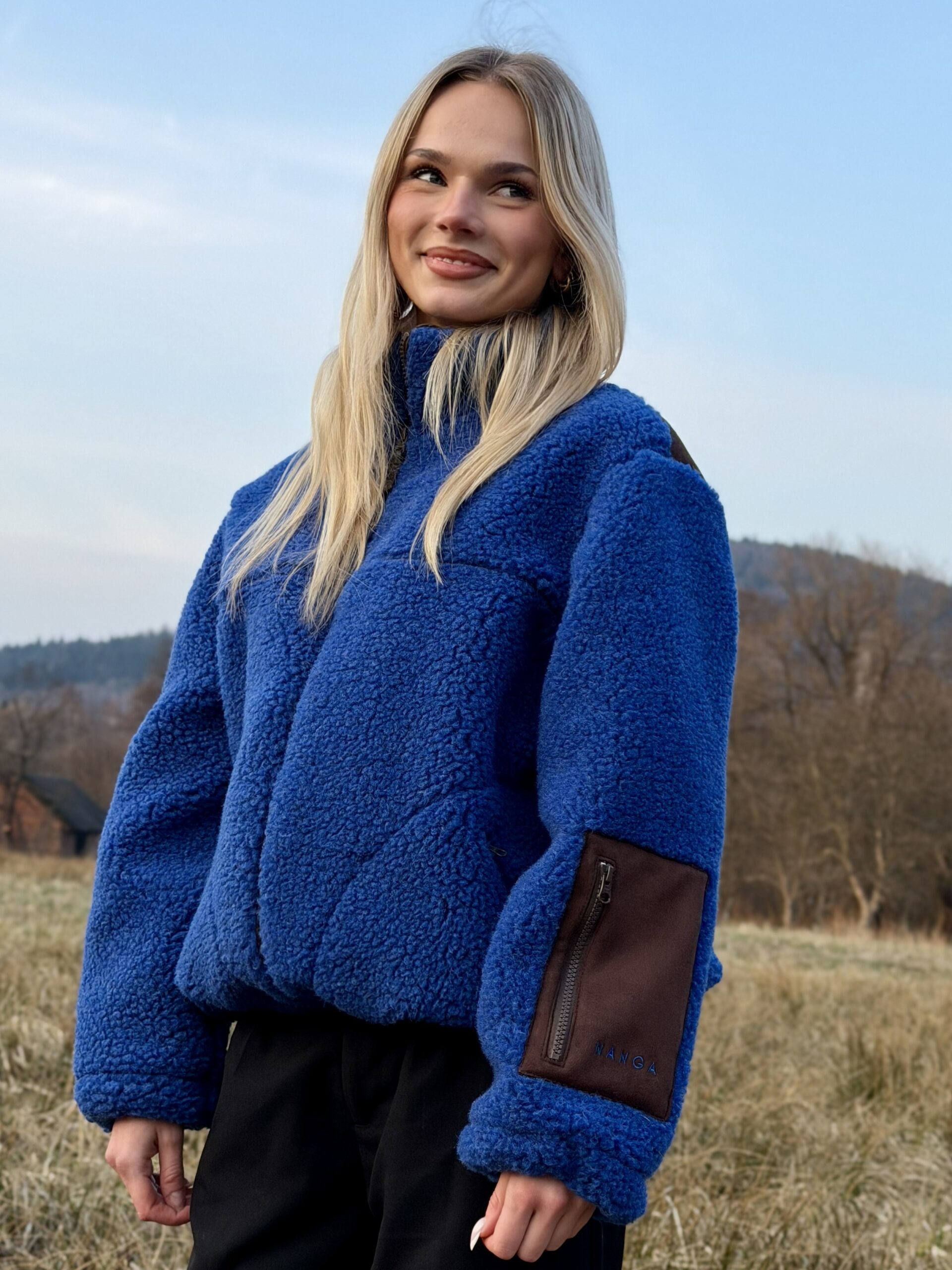 To model oversize — swobodny, nieopinający, z miejscem na dodatkową warstwę pod spodem. Dobrze układa się w ruchu i daje poczucie miękkiej, stabilnej struktury zamiast ciężkiej kurtki.